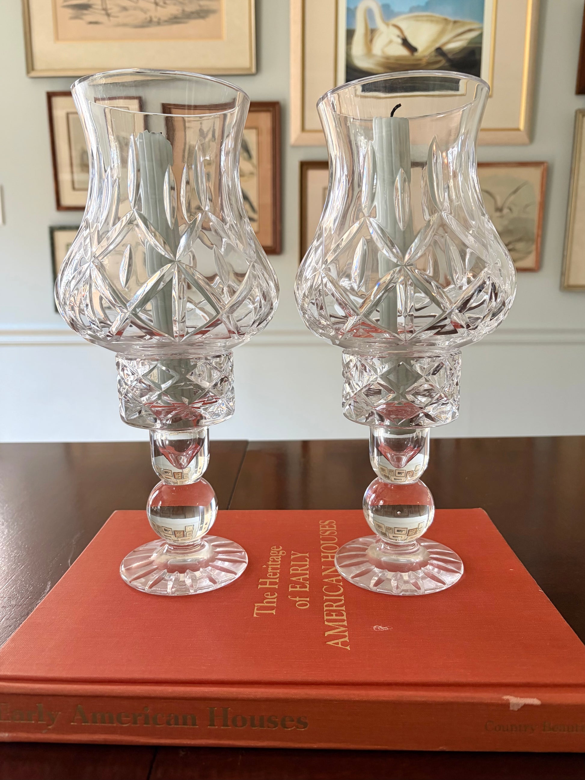 Pair of Vintage Crystal Two-Piece Hurricanes